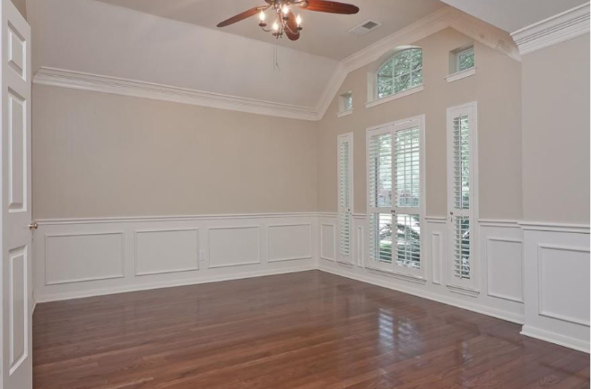 그래서 웨인스코팅이 벽면의 패널 중의 하나인 것은 맞지만, 아주 엄밀히 말하자면 모든 벽면 패널이 웨인스코팅인 것은 아닙니다. 원래의 형태대로라면 의자 높이 정도의 나무 패널을 벽면의 아랫쪽 반에 두른 것이 웨인스코팅이기 때문입니다. 이 나무판은 단열을 위한 것이면서, 의자의 등받이나 신발에 의해서 벽이 손상되는 것을 막는 역할을 했습니다. 물론 요즘의 웨인스코팅 역시 벽을 보호하는 역할을 한다고 할 수 있지만, 단열이 잘 되어 있는 현대의 가정집들에서는 장식의 목적이 훨씬 커졌지요. 아래 사진에서처럼 벽의 아랫쪽 반에 둘러진 형태가 전통적인 웨인스코팅입니다.