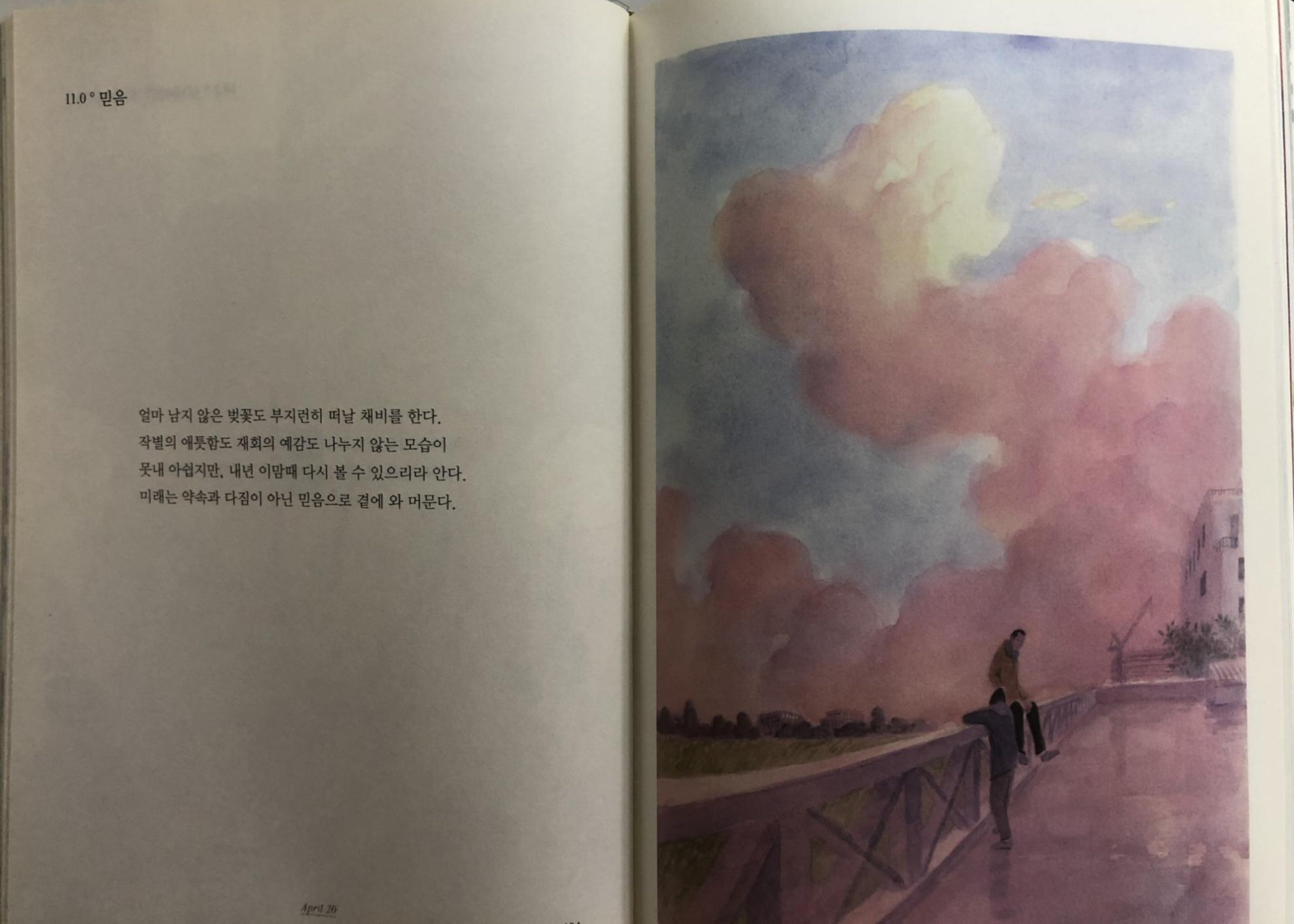 하지만 이 책의 매력은 그 이력으로 설명될 수는 없습니다. 유명하다더라, 상을 받았다더라 하는 이야기보다 이 책에 담긴 그림이 주는 여운이 참 좋거든요. 강렬하지는 않지만 담백하고 따스한 느낌이 드는데, 아마도 그 이유는 그림을 그리는 사람의 풍경과 사람을 향한 시선이 그래서 그렇지 않을까, 저는 생각합니다. 그림 뿐 아니라 서정적인 필치로 그림 옆에 씌여진 문장들을 읽는 맛도 저에게는 참 좋습니다. 여백이 많고 함축적이라 그 행간을 상상하게 만들기도 하고, 내 상황에 대입하게 되기도 하고요.
