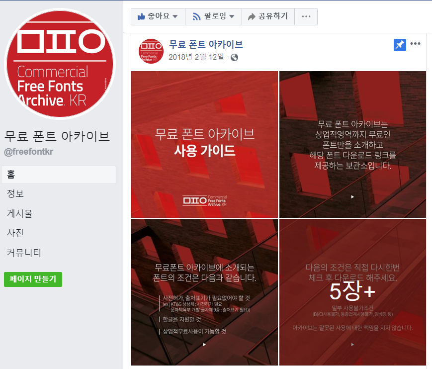 # 무료 폰트 아카이브(페이스북 페이지)